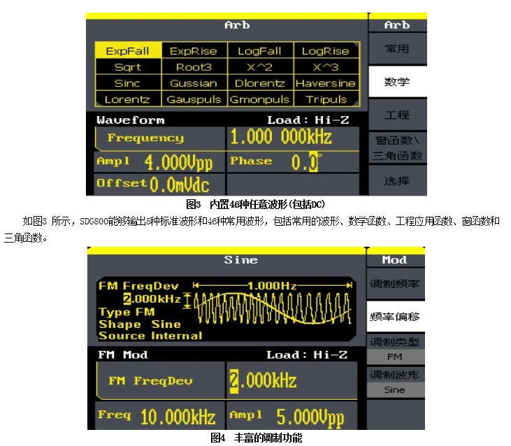•   ● 豐富的調制功能:AM、DSB-AM、FM、PM、FSK、ASK、PWM以及輸出線性/對數掃描和脈沖串波形
