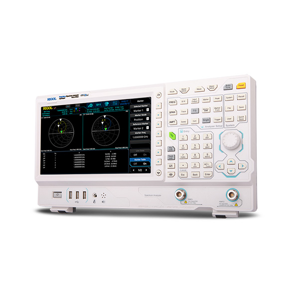 實時頻譜分析儀,帶跟蹤源,頻率范圍9kHz~4.5GHz,最大實時帶寬40MHz,分辨率帶寬1Hz~10MHz,相位噪聲(典型值)-102dBc/Hz@10kHz,顯示平均噪聲電平(DANL)-161dBm,10.1"多點觸摸屏,USB、LAN、HDMI等通信和顯示接口。