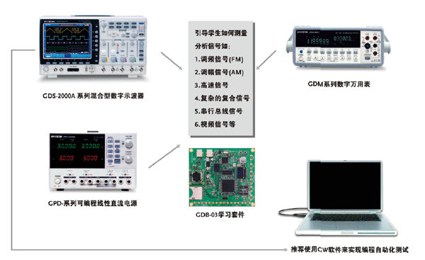 GDB-03專業(yè)教學實驗設計,引導學生學習如何用示波器等來測試各種常見信號等