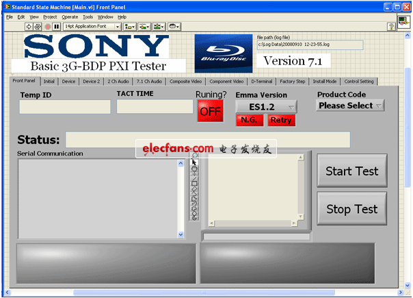 我們以前的測試系統包括一臺電腦和一個可用GPIB控制的示波器,在使用這種老式設備的時候我們遇到了一些限制。示波器僅有四個通道,不能同時測試藍光播放機的多個輸出。因此,我們在該系統中集成了一個開關,這導致了工作時間增加。我們還需要建立并行測試站以滿足我們的日常生產目標,這將使設備成本變得更高。